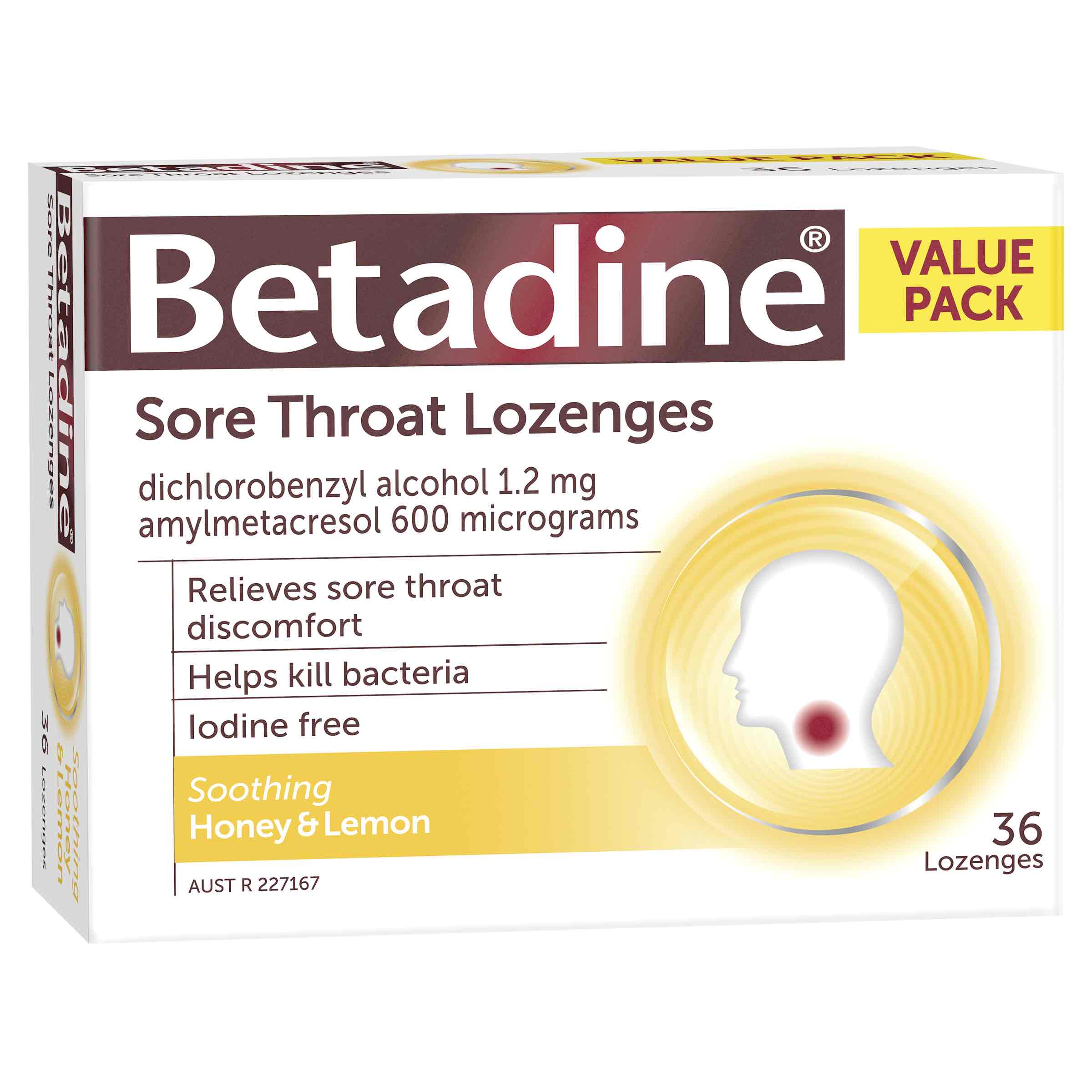 Betadine Sore Throat Lozenges Honey & Lemon 36 Pack